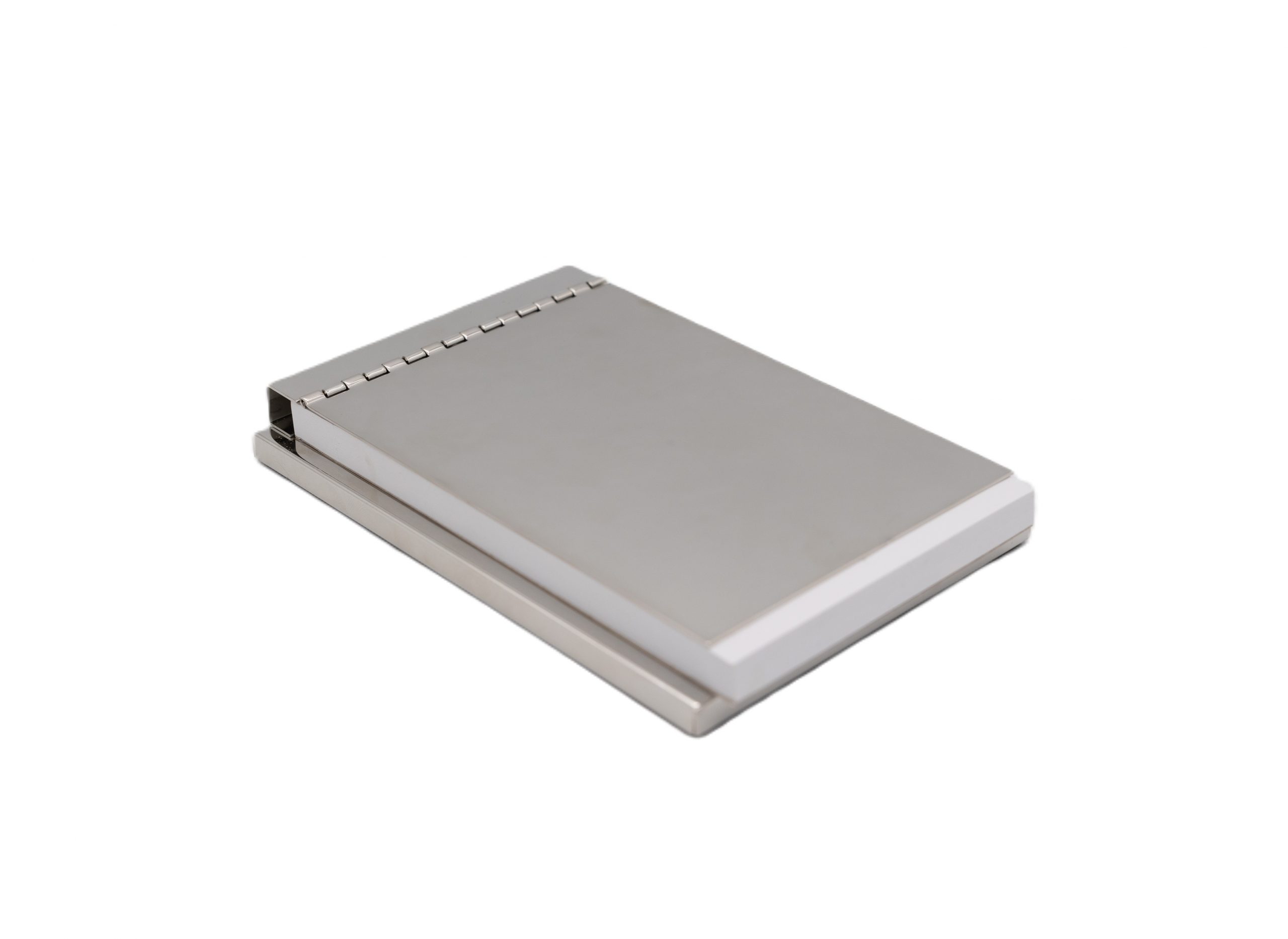 - Silverplated Hinged Desk Memo Pad with paper.
