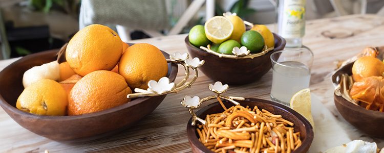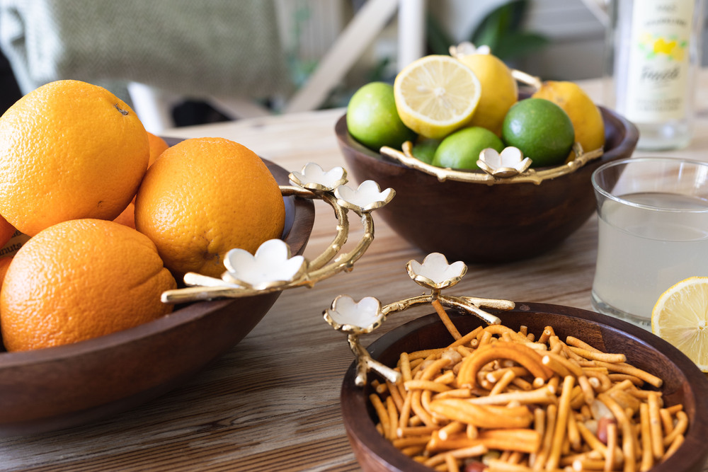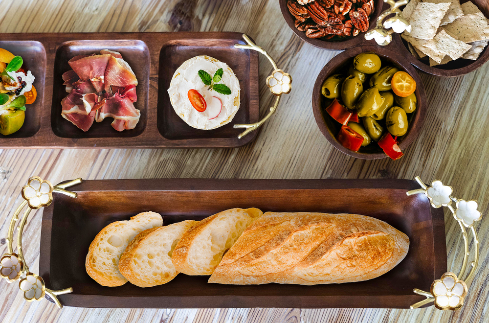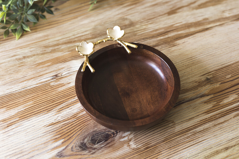 Our Mango Wood Collection effortlessly blends rustic charm with elegance, making it the perfect addition to your kitchen. Handcrafted from mango wood, this sustainable hardwood is most appreciated for its unique grain patterns, resistance to water, and durability, meaning that you will enjoy a finish that is sure to last years. The dark, rustic colour beautifully complements the stunning primrose gold finishings on each product. From deep dishes to platters, fruit bowls to serving trays, this charming set is perfect for adding a touch of organic beauty to your dining tables or alternatively, makes for an ideal, heartfelt house warming gift.