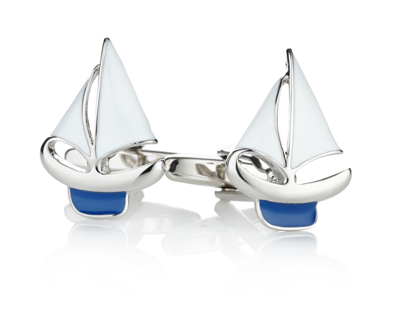 Blue Yacht Cufflinks. Silverplated and presented in a stylish leatherette case