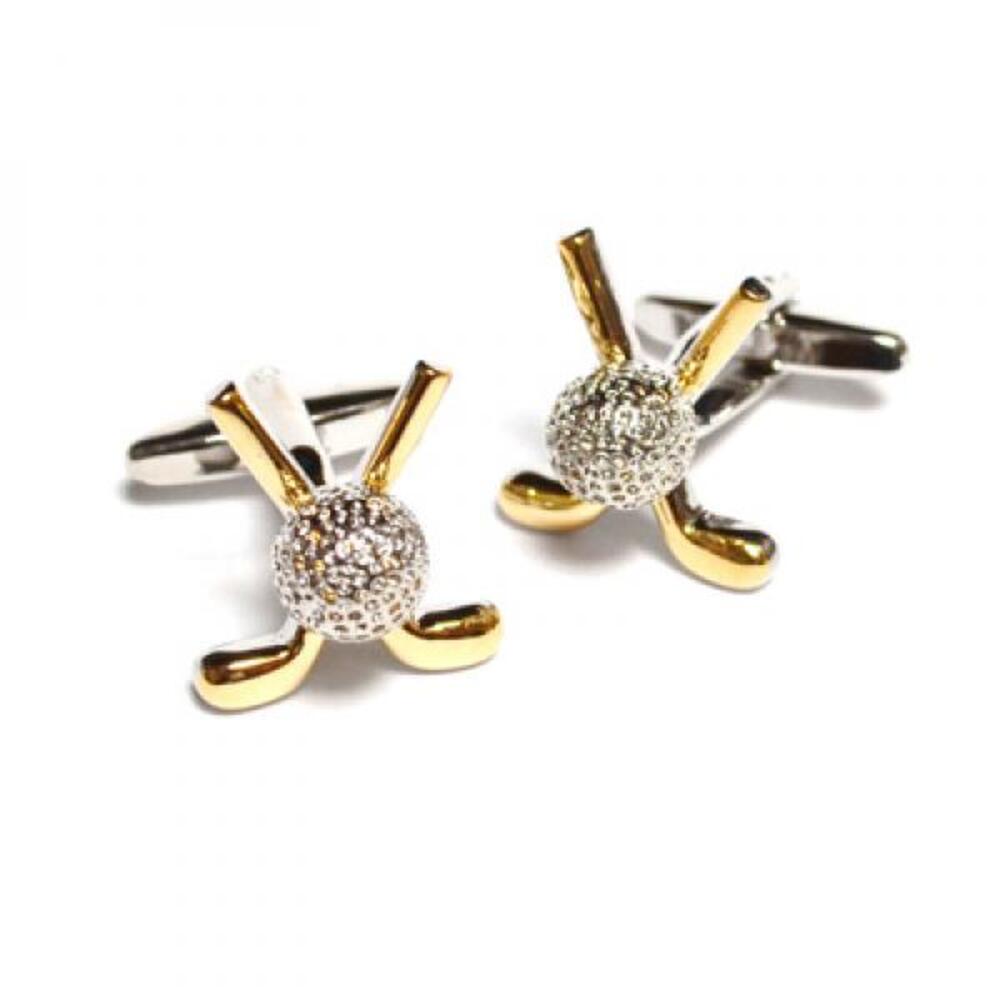 Crossed Golf Clubs with Golf Ball Two Tone. Silverplated and presented in a stylish leatherette case