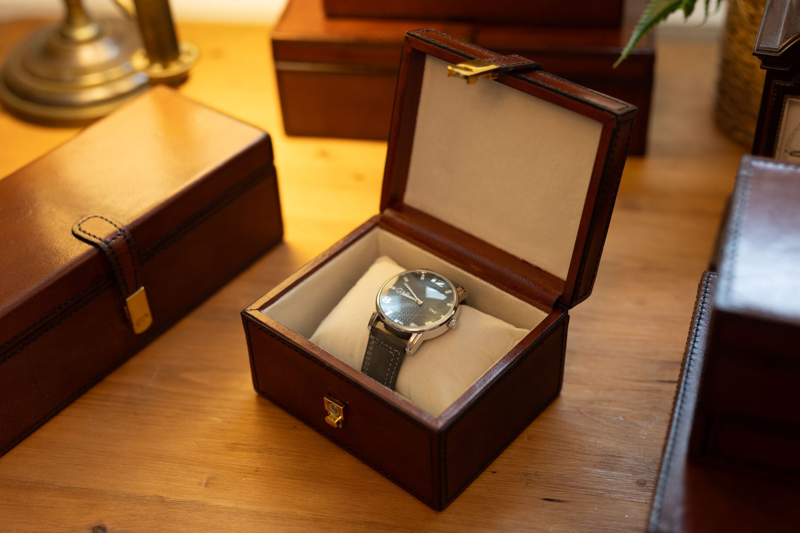 Ideal for cufflinks or jewellery it includes a soft suedette cushion for keeping either your watch or necklace safe.