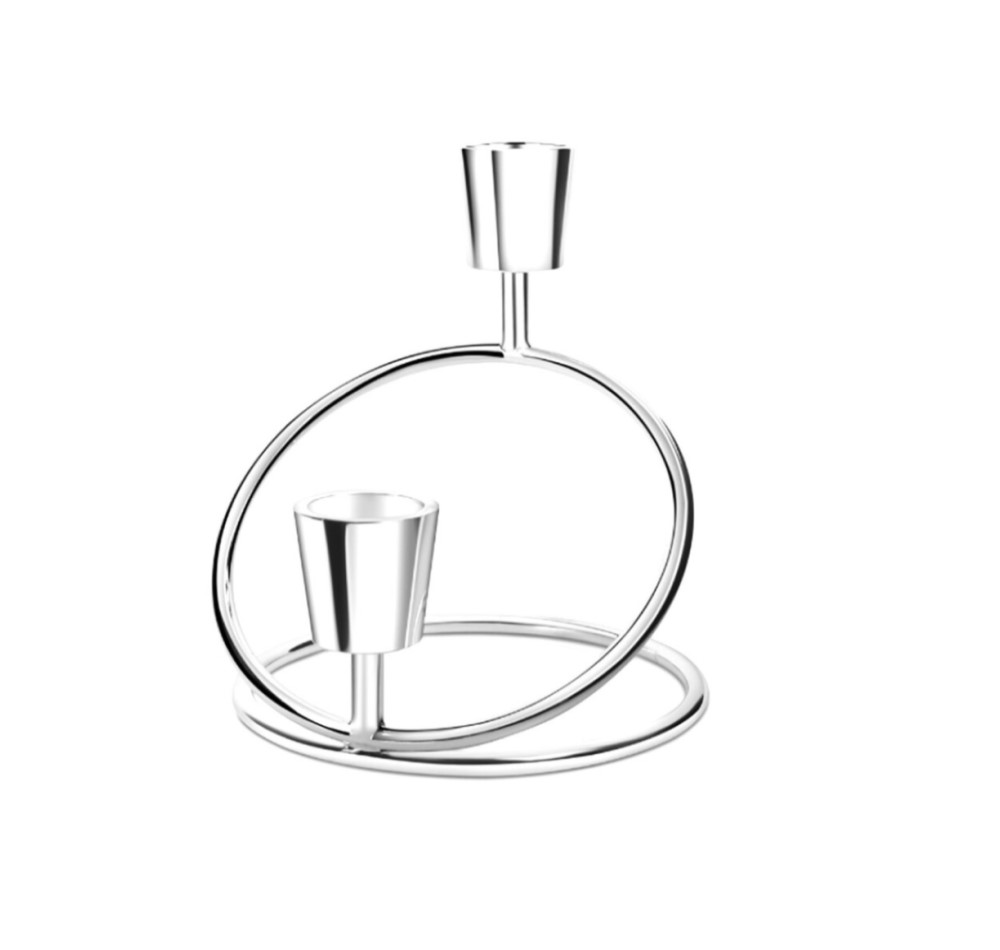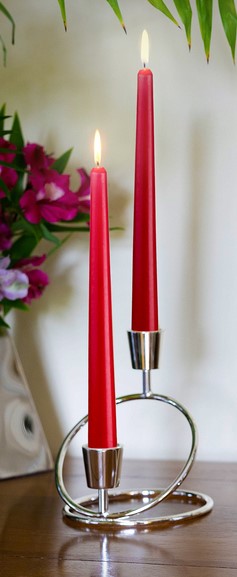 Silverplated with an anti-tarnish finish, it holds 2 taper candles, (not included), and is gift boxed.