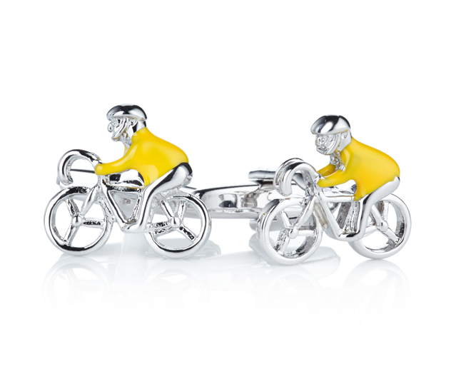 Yellow Jersey Racing Cyclist Cufflinks. Silverplated and presented in a stylish leatherette case